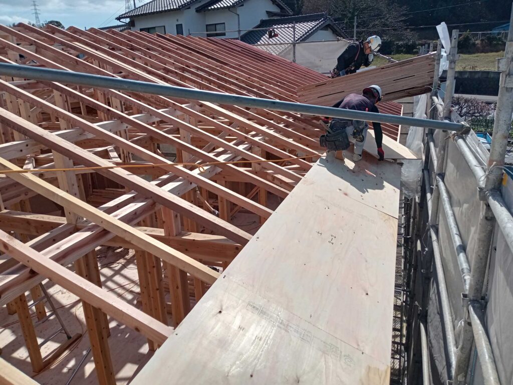 隙間なく野地板の施工が終わりました!