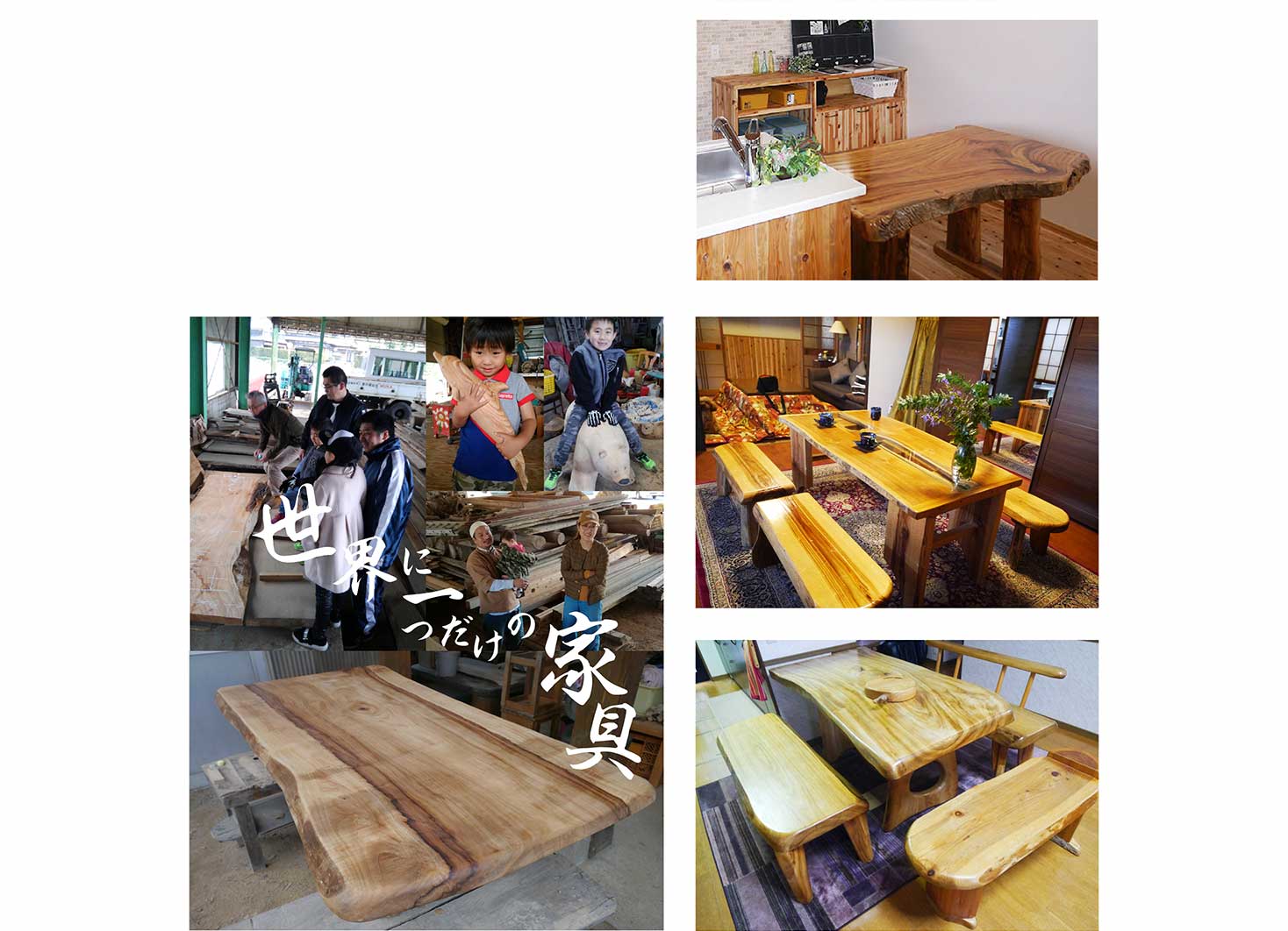 木が家の守り神になる願いを込めて、天然木をお客様に選んでいただき、その家族のためだけのオリジナルの家具を製作しています。