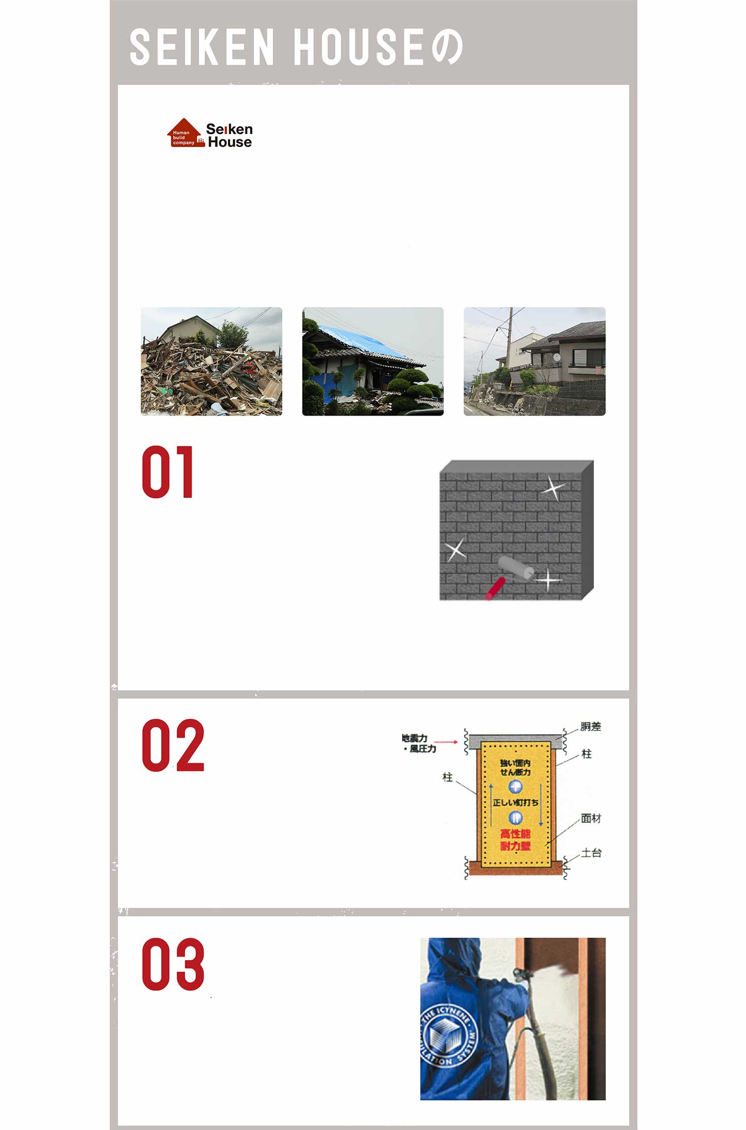 2階から落としても割れない程の強度。基礎工事の「ホームメイキャップ塗装」を採用。外観の美観を整えるだけでなく、コンクリートの中性化を実現。地震などの外力による破壊を防ぎます。