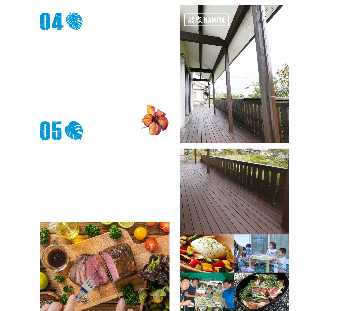 天然の木目をそのままに、屋内にはぬくもり溢れる飫肥杉を使用し、屋外にはサザンイエローパイン材をふんだんに使用したハワイアンスタイル。