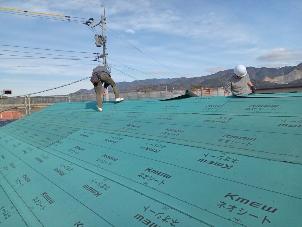 野地板、防水シート、そしてこの後の工程で、屋根材を施工します!