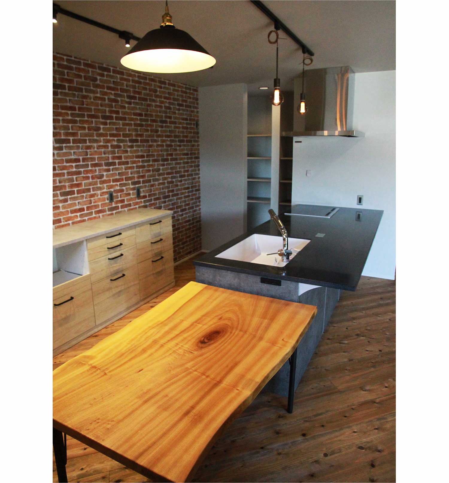 レンガむき出しの壁や、無機質でインダストリアルな素材をセンスよくレイアウトすることで完成します。