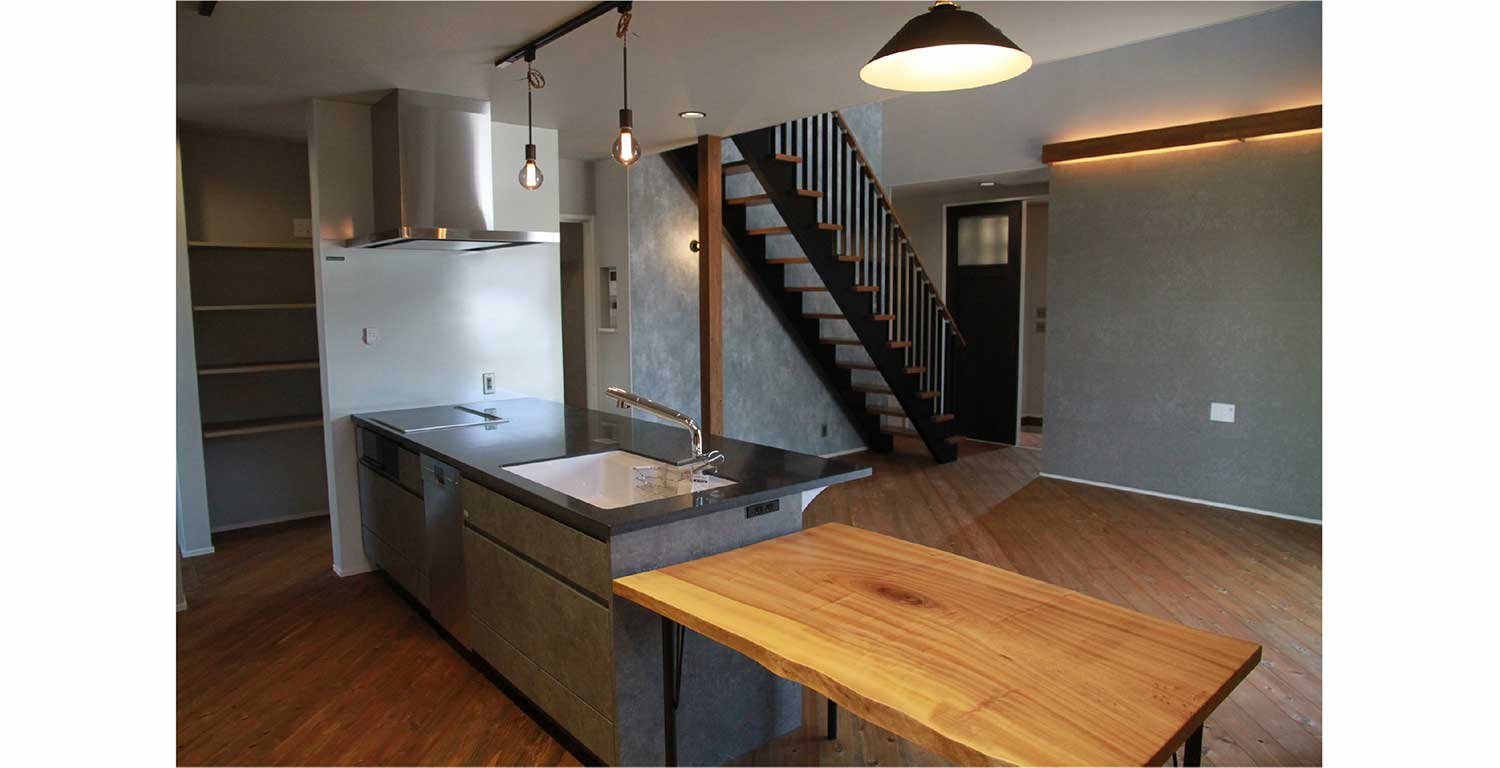 ブラウン、グレー、アルミなどの素材を活かして配色すると、無機質でクールなイメージの空間がつくり出せます。そこにセイケンハウスならではの「木の温もり」をプラスして飽きのこない空間をデザインしました。