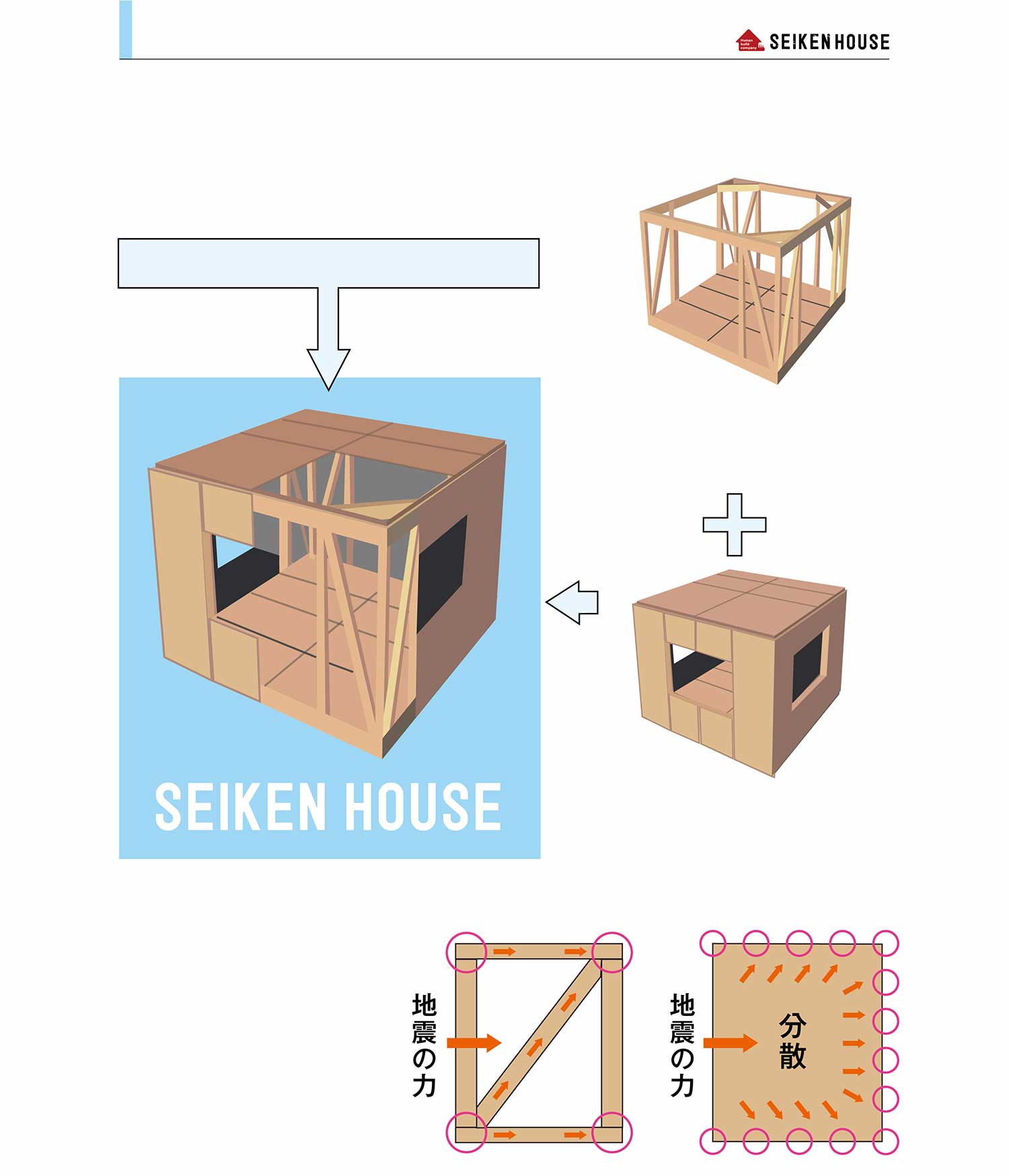 全体を一つの箱にし、壁面全体で外力を受け止め、耐震・