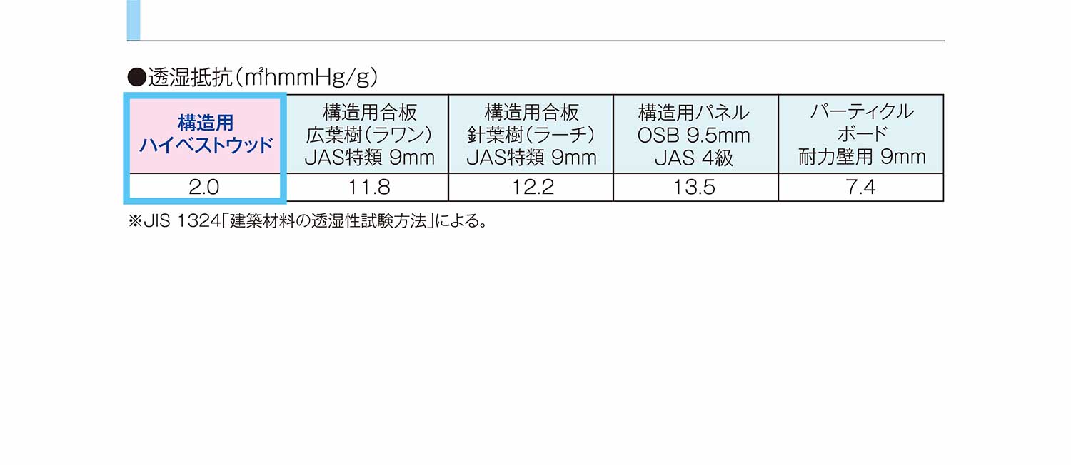他の面材と比較して透湿抵抗が低く、湿気を屋外に排出しやすい材料