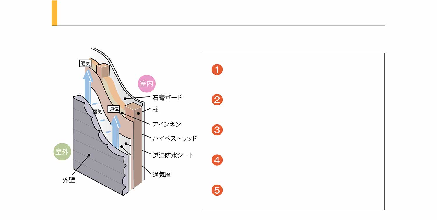 空気中の湿気をため込まないため内部結露