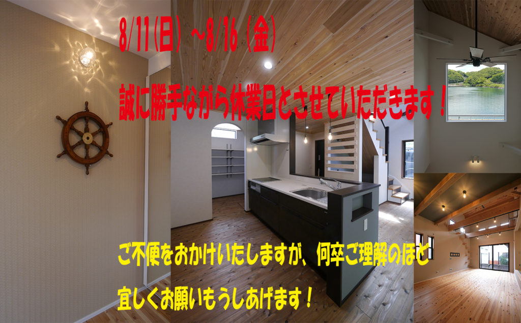 夏季休業日のお知らせ♪ 8/11(日)~8/16(金)